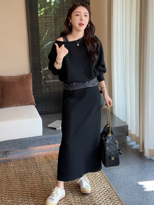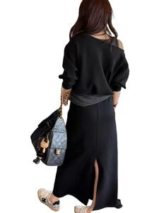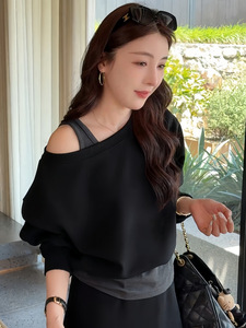 松弛感穿搭一整套假两件卫衣两件套宽松露肩韩系早秋穿搭套装裙