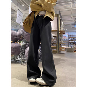现货厂家批发 西装高腰卡其色阔腿裤女 新款显瘦宽松直筒裤子 女