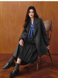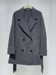 诗**黎女装2025秋冬新款中长款大衣外套双排扣双面呢7G8470311