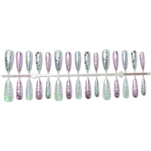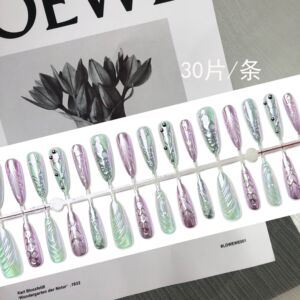 液态金属跨境热销外贸穿戴甲千禧辣妹珠光镭射美甲贴片fake nails