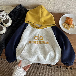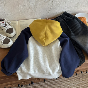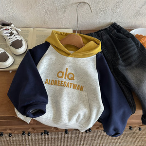 男童连帽卫衣2025秋季新品儿童连帽衫拼色潮流宝宝字母上衣韩系