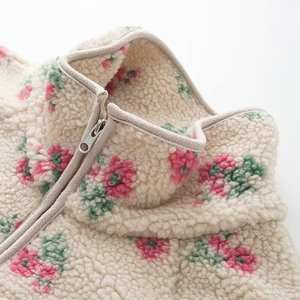速卖通ZA跨境女装批发欧美风新款羊羔绒碎花立领宽松拉链夹克卫衣