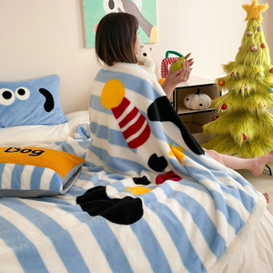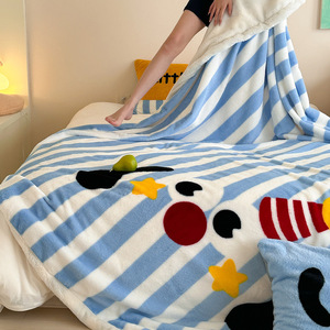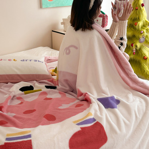 秋冬卡通大版加厚A类兔兔绒双面毛毯办公室午睡休闲沙发保暖盖毯