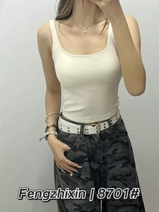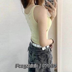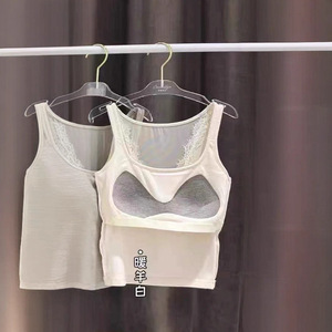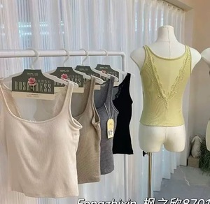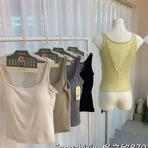 秋冬玫瑰香衣8701方领螺纹棉蕾丝拼接镂空蕾丝美背一体式保暖背心