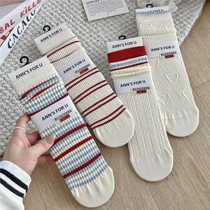微压力条纹堆堆袜女款韩版配色条纹中筒复古新品简约中筒袜诸暨袜