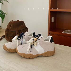 德训鞋女款2025秋季内增高防滑阿甘鞋高级感流苏鸳鸯鞋带休闲鞋子