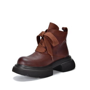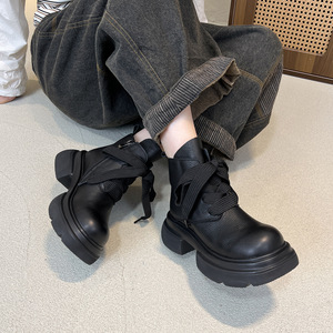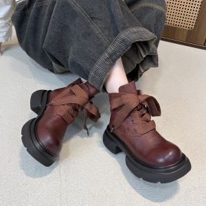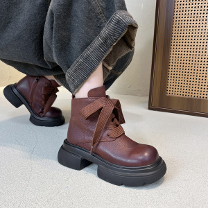 高端小众设计英伦风厚底系带短靴真皮马丁靴2025秋冬新款牛皮女靴
