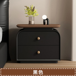 中古风创意设计感小众床头柜实木小型卧室轻奢高级感黑色收纳柜子