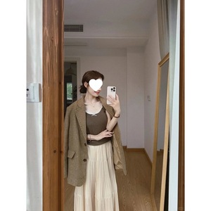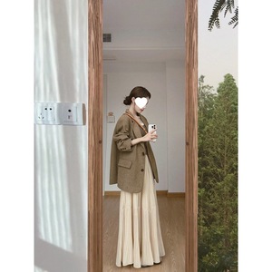 初秋一整套穿搭卡其色西装外套女秋季新款韩系显瘦气质西服上衣女