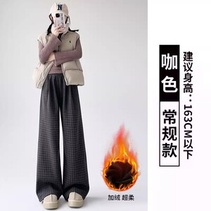 黑色复古格子裤女秋冬加绒2025新款慵懒拖地裤休闲直筒宽松阔腿裤