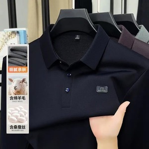 【秋季新品】汤米正品男士高档含桑蚕丝绵羊毛POLO衫亲肤细腻t恤