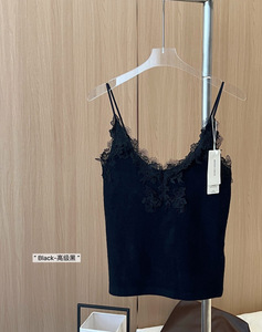 早秋微厚法式吊带 设计感睫毛蕾丝花边背心百搭纯色细肩带V领上衣