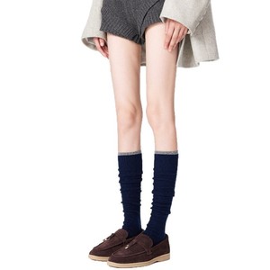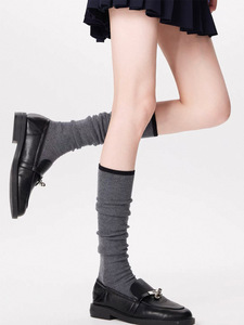 秋冬灰色长筒袜羊毛显瘦小腿袜条纹过膝袜撞色袜子女款搭配小皮鞋