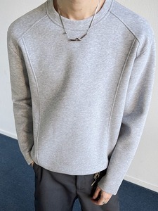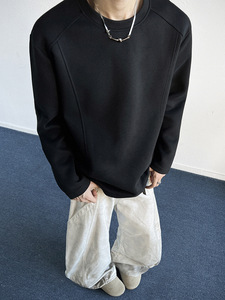 美式硬挺解构拼接圆领长袖T恤男款秋季干净合身运动休闲无帽卫衣