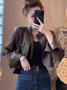 咖啡色皮衣