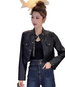 棕色短款皮衣外套女春秋美式复古流行小个子短款显瘦机车pu皮夹克