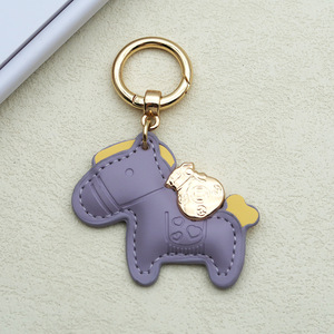 马上有钱钥匙扣创意皮革卡通小马挂件情侣爱心小马汽车钥匙扣包挂