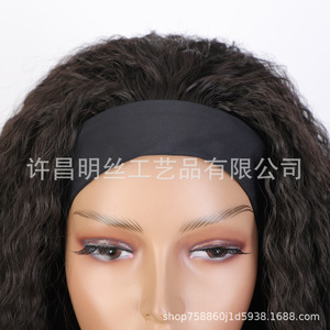 外贸假发yaki headband wigs冰丝发带螺丝卷长卷发女头巾假发头套