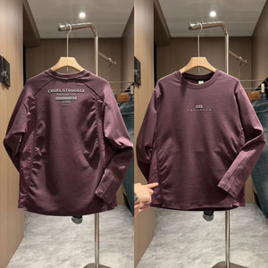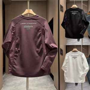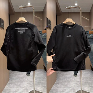 秋季潮牌结构拼接个性字母设计款男士休闲卫衣字母长袖T恤打底衫