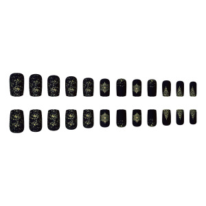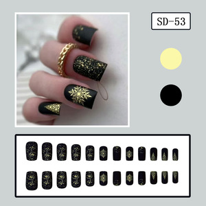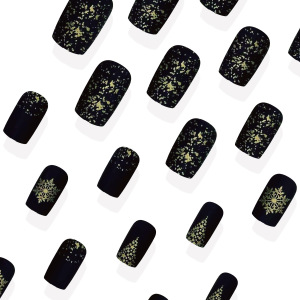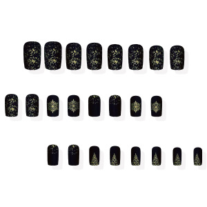 圣诞节中方黑金哑光雪花圣诞树碎金片图案设计穿戴甲美甲甲片指甲