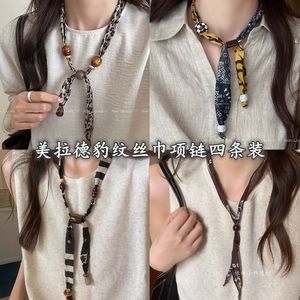 美拉德豹纹印花丝巾项链女2025新款爆款个性毛衣链小众设计感配饰