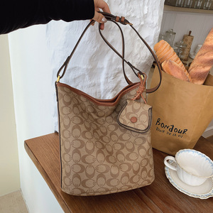 古缇寇跨境小众设计时尚潮流印花水桶包女士百搭复古单肩斜挎包