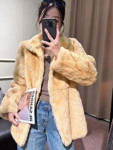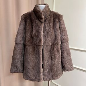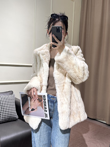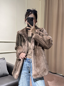 厂家直销翻领雷克斯兔毛显瘦真毛皮毛一体中长款海宁女士皮草外套