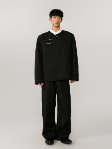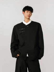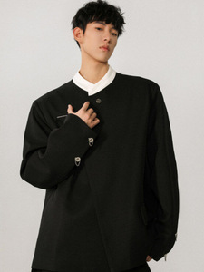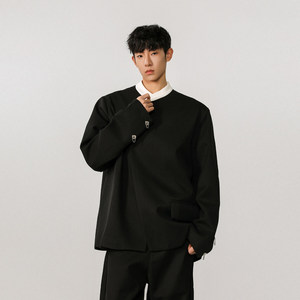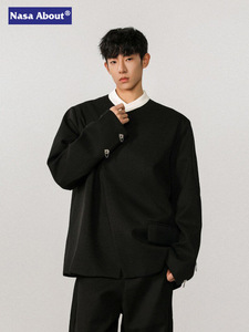 NASA新中式春秋季立领拼色拼接金属搭扣卫衣男士宽松休闲百搭上衣