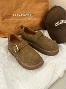 真皮复古勃肯鞋女2025秋季新款丑萌大头厚底一脚蹬软底休闲乐福鞋