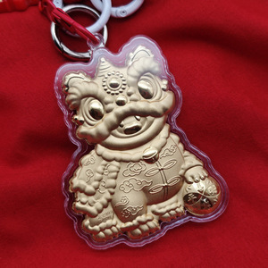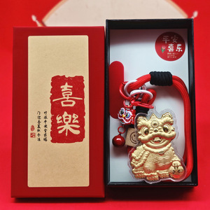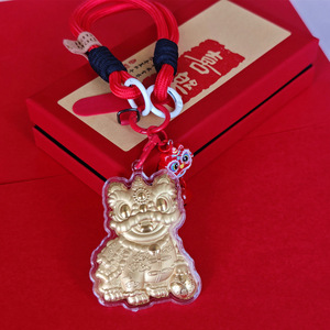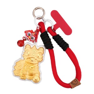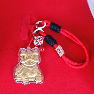 水贝足金999中国风醒狮手机链吉祥物挂件钥匙扣包包挂饰国潮礼品