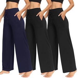 跨境爆款春秋季女士休闲运动宽松瑜伽裤带口袋阔腿裤三条装休闲裤