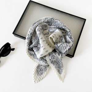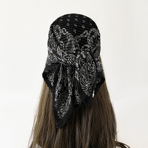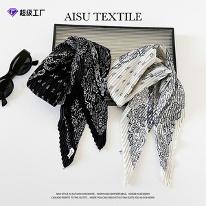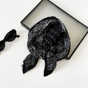 褶皱小丝巾女雪纺印花装饰领巾韩版潮春秋季搭配衬衫小领巾批发