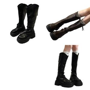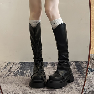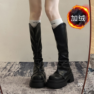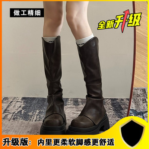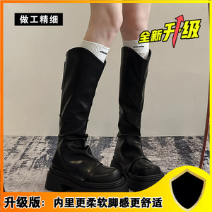 长筒靴女秋冬新款靴子口高筒小筒围粗跟爆款长靴真皮骑士靴