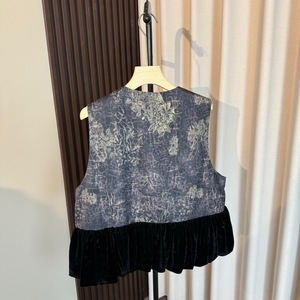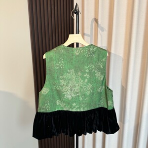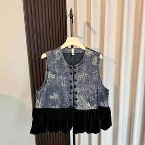 新中式国风香云纱马甲背心复古盘扣提花洋气拼接丝绒无袖上衣