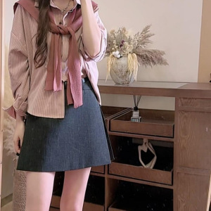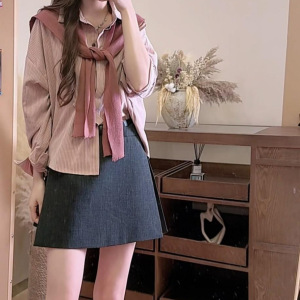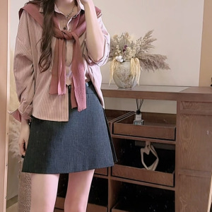 粉色衬衫+半裙+腰带+披肩(四件套)