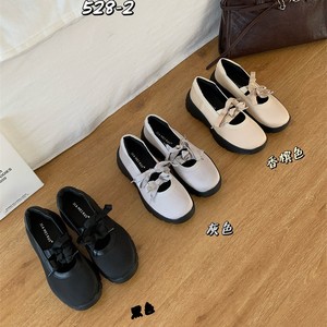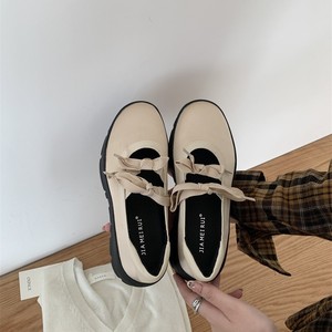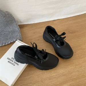 2025秋款厚底香槟色玛丽珍鞋复古蝴蝶结增高运动风浅口休闲芭蕾鞋