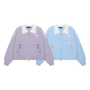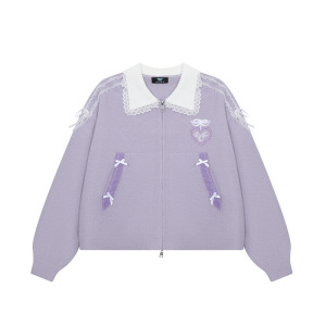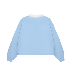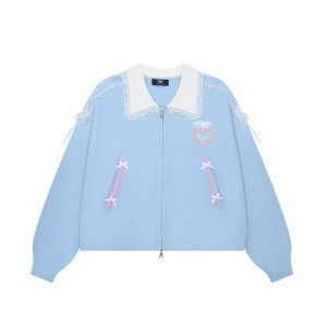韩系甜美蕾丝拼接刺绣娃娃领毛衣外套女2025秋季宽松休闲针织开衫