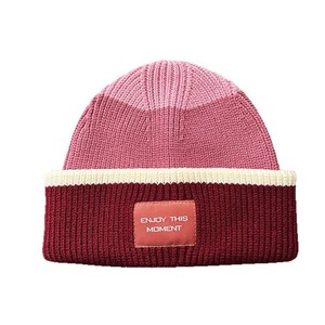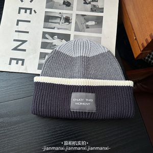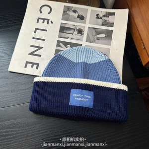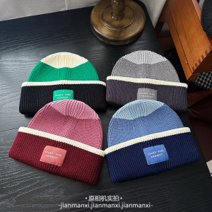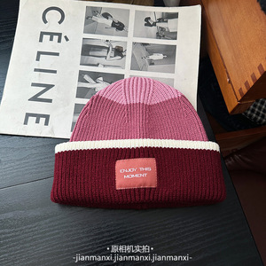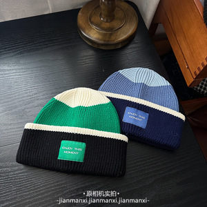 韩版洋气撞色字母贴标毛线帽凹造型百搭秋冬时髦保暖瓜皮针织帽