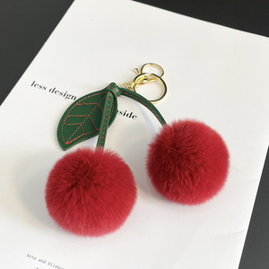 新款仿毛单叶樱桃毛绒挂件时尚汽车批发钥匙扣网红可爱包包挂件饰
