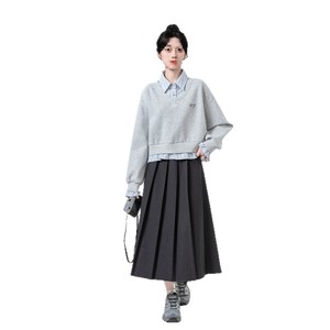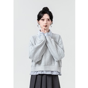 灰色假两件卫衣女春秋2025新款设计感拼接衬衫POLO领套头短款上衣