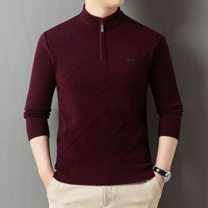 中年男士外贸秋冬新款加厚半高领拉链毛衣针织打底衫保暖爸爸男装