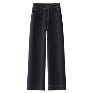 蓝色牛仔直筒裤女2025新款秋季美式高腰显瘦宽松小个子阔腿九分裤