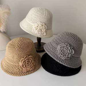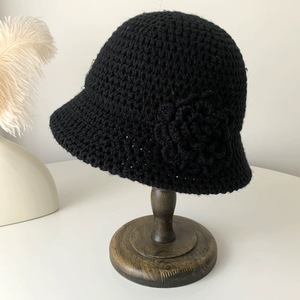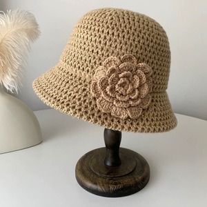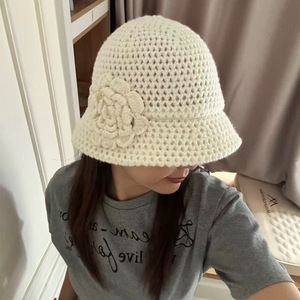 森系立体玫瑰花针织渔夫帽含羊毛可爱洋气休息那百搭保暖毛线盆帽