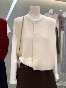 新年红色简约日常圆领无袖排扣针织马甲秋冬新款背心搭配上衣女士