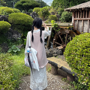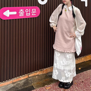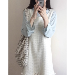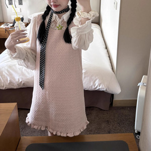 MENGXIANG 奶酪色/ 藕粉色 橄榄条花边日常无袖纯色背心裙连衣裙