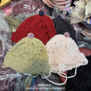 多戴法羊毛混纺软糯镂空邦迪堆堆帽子女秋冬新款ins甜美包头帽潮