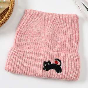 可爱猫咪保暖毛线帽韩版时尚百搭秋冬护耳针织帽大头围显脸小套帽