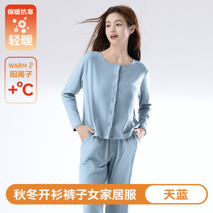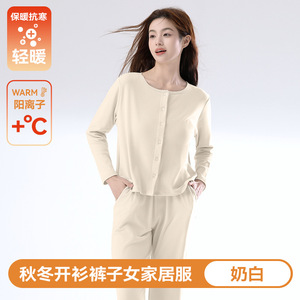 可外穿睡衣女秋冬款加绒2025新款阔腿长袖长裤开衫保暖家居服套装