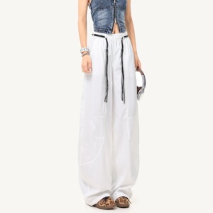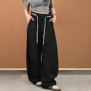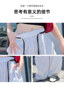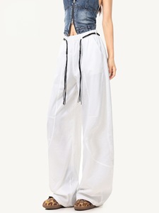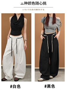 白色镰刀休闲裤女2025新款秋季百搭抽绳高腰显瘦宽松弯刀阔腿裤子
