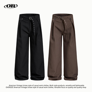 OREETA丨高级感休闲直筒西裤男女可穿宽松垂感配腰带阔腿拖地长裤